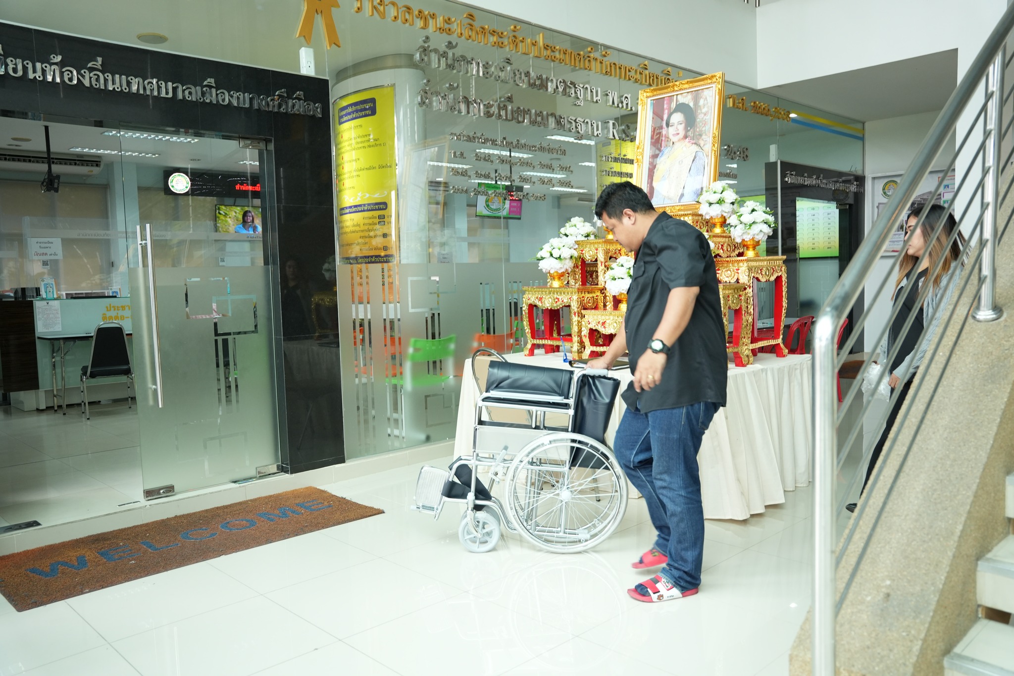 รับมอบรถเข็นนั่ง (วีลแชร์) เพื่อให้นำไปใช้ประโยชน์ช่วยเหลือคนพิการในสำนักงานเทศบาลฯ จำนวน 5 คัน จากประชาชนผู้มีจิตสาธารณะ จากรายนามผู้บริจาค ดังต่อไปนี้
