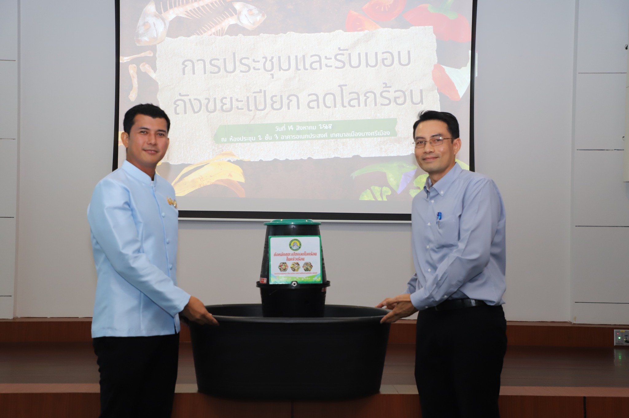 โดย ดร. ปริญญา ศักดิ์นาวี นายกเทศมนตรีฯ มอบถังขยะเปียก ลดโลกร้อนให้กับตัวแทนชุมชน 41 ชุมชน วัดโรงเรียน ศูนย์พัฒนาเด็กเล็กฯ ในเขตเทศบาลฯ