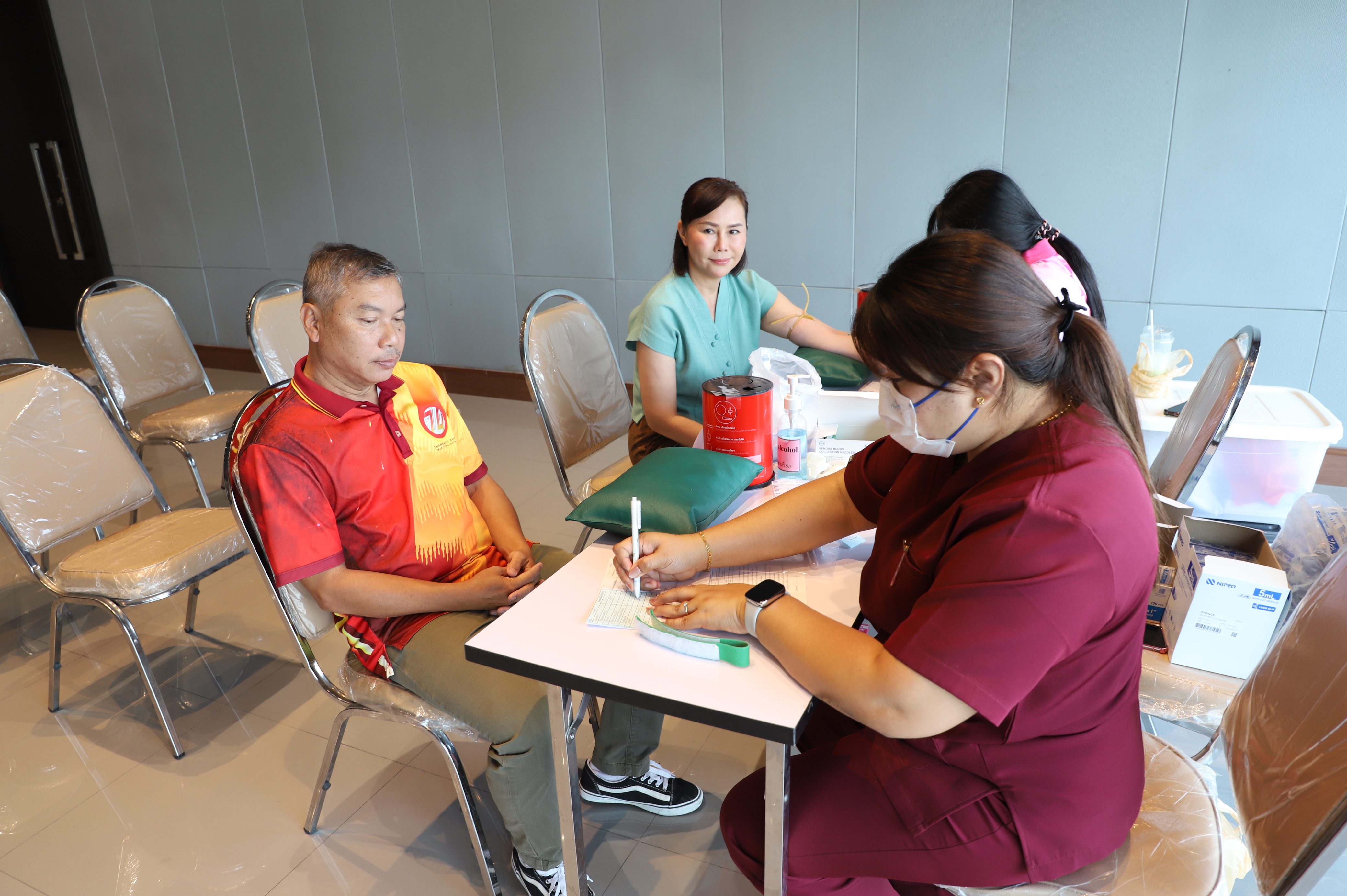 การตรวจสุขภาพ บุคลากรของเทศบาลฯ ภายใต้โครงการคัดกรอง ลดเสี่ยง เลี่ยงโรค