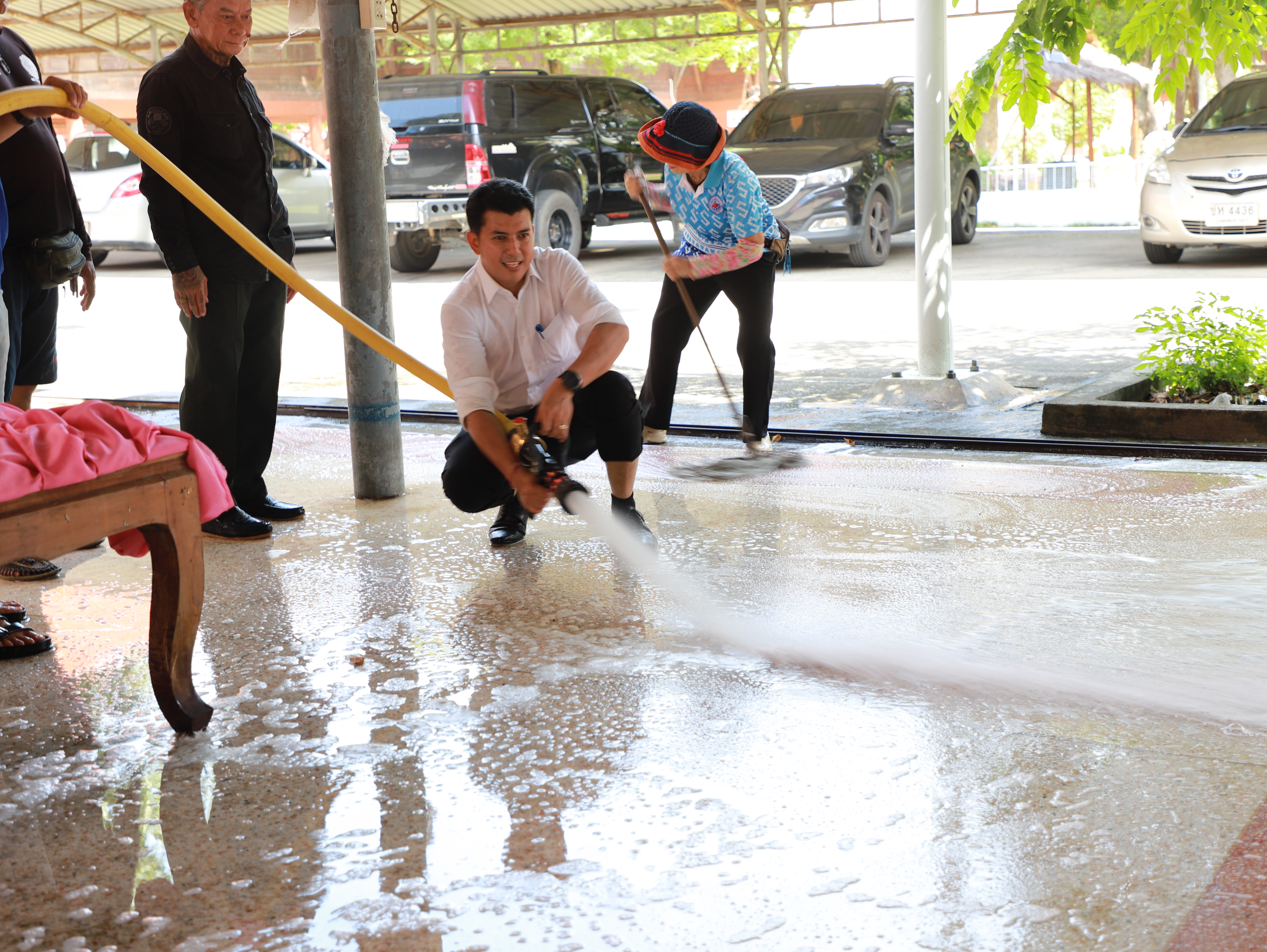 โดยมี ดร.ปริญญา ศักดิ์นาวี นายกเทศมนตรีเมืองบางศรีเมือง, นายทศพล ฟักประไพ ที่ปรึกษานายกฯ, คณะผู้บริหาร ,ประธานสภา, สมาชิกสภา และอาสาสมัครสาธารณสุขประจำหมู่บ้าน(อ.ส.ม.) เข้าทำความสะอาดด้วย