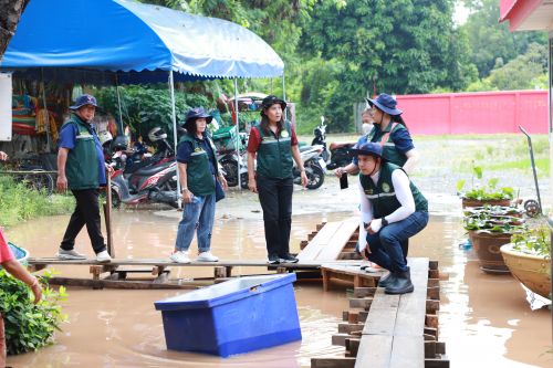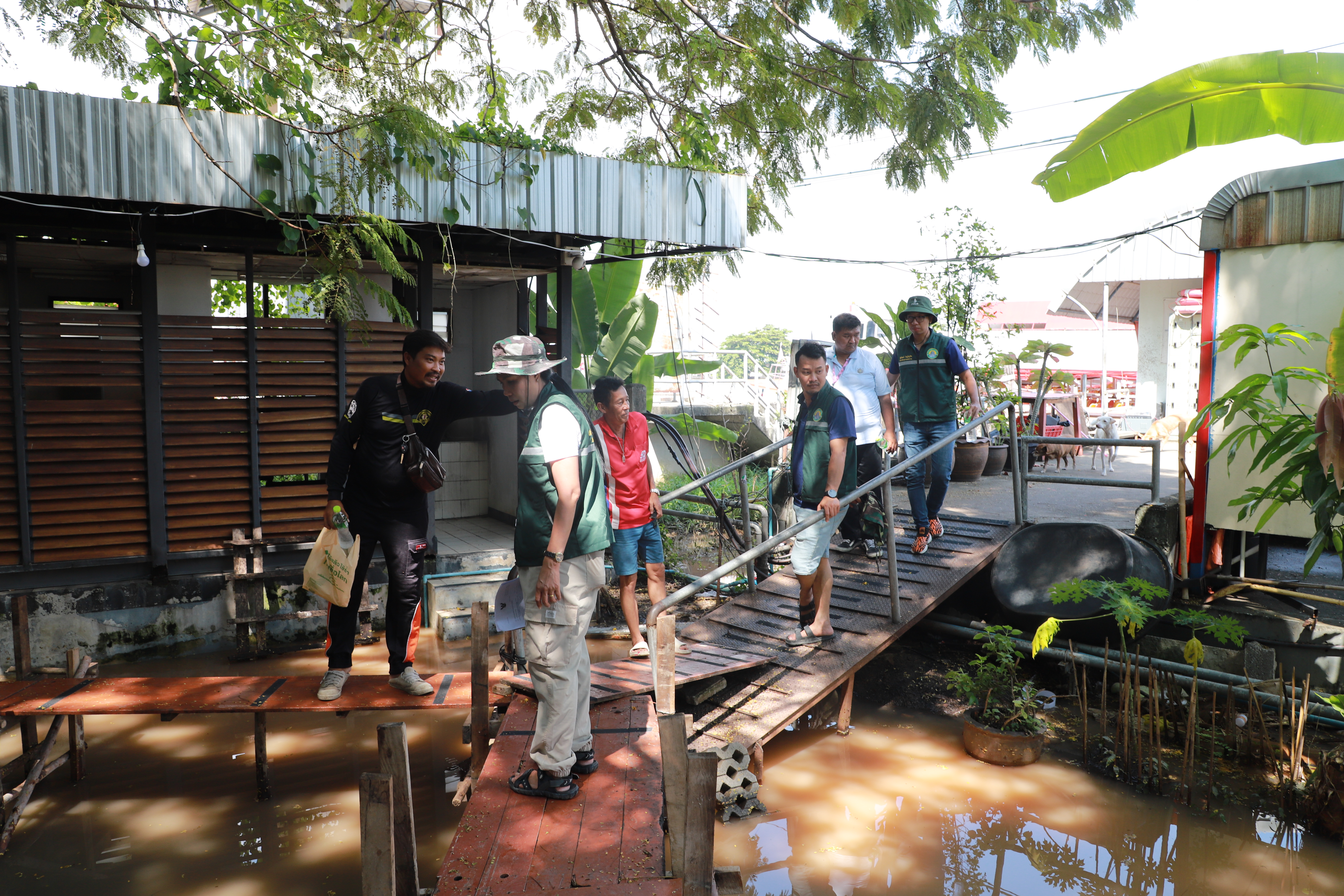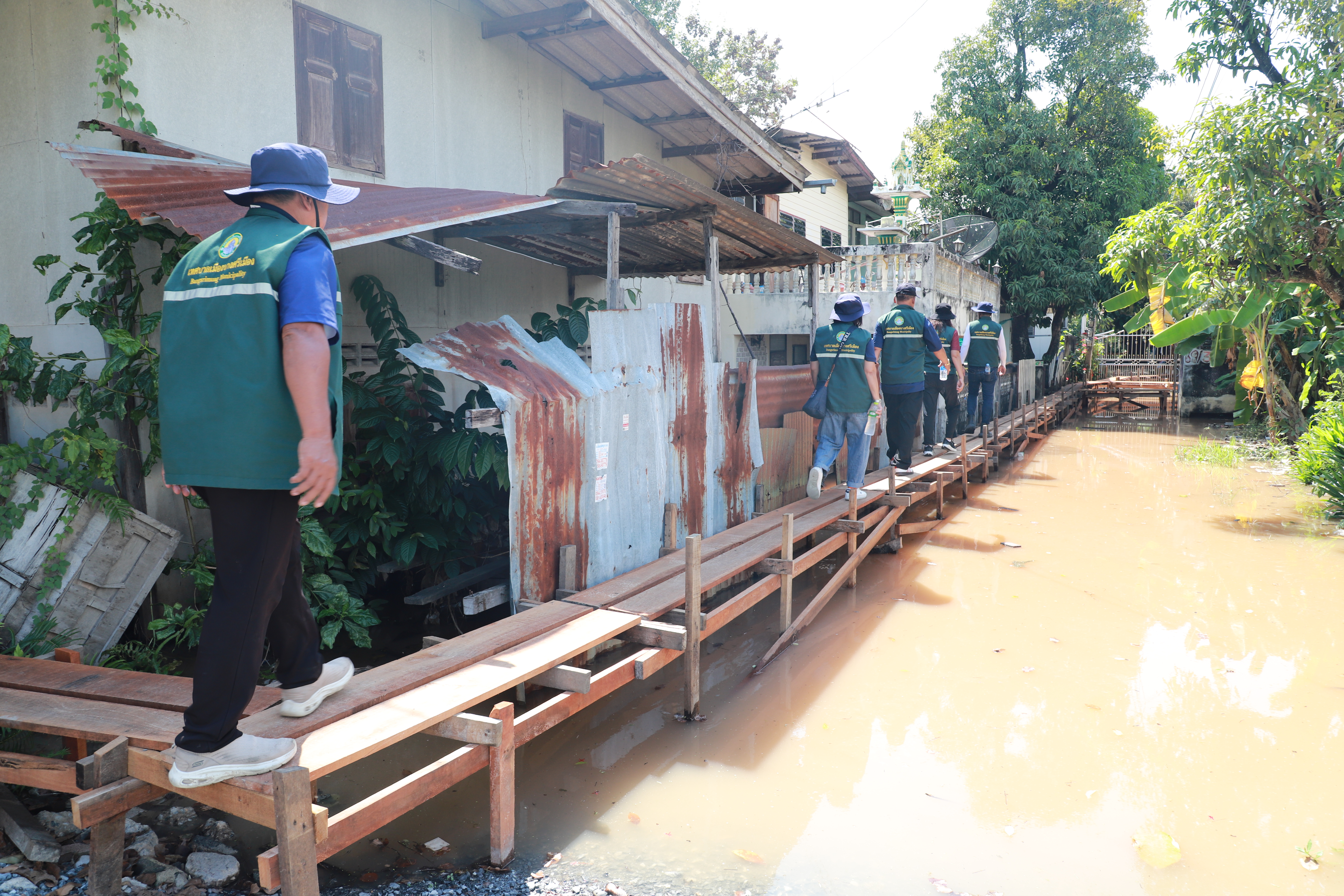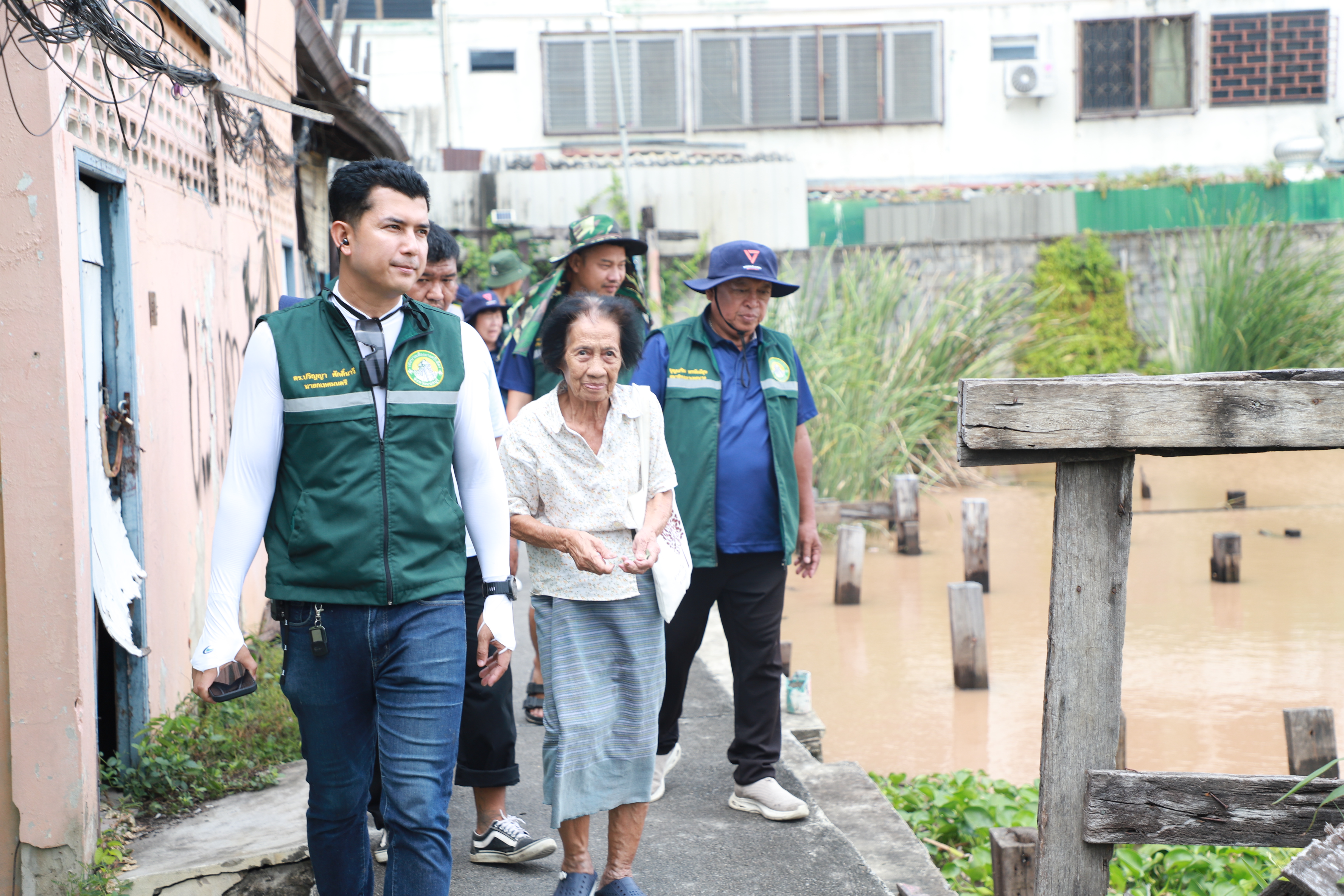 ลงพื้นที่เพื่อสำรวจบ้านเรือนประชาชนที่ได้รับผลกระทบจากน้ำท่วมขัง ภายในเขตเทศบาลเมืองบางศรีเมือง