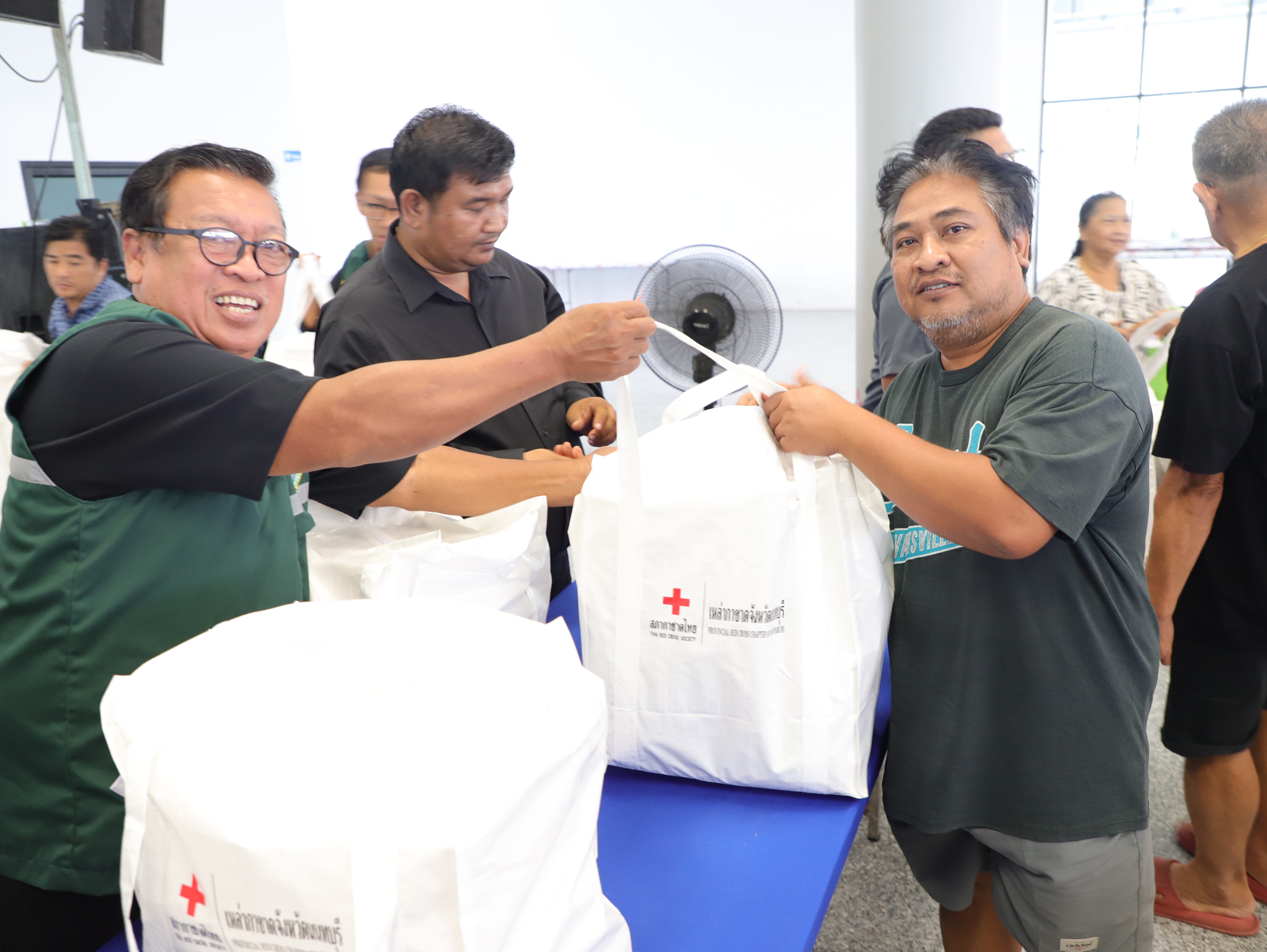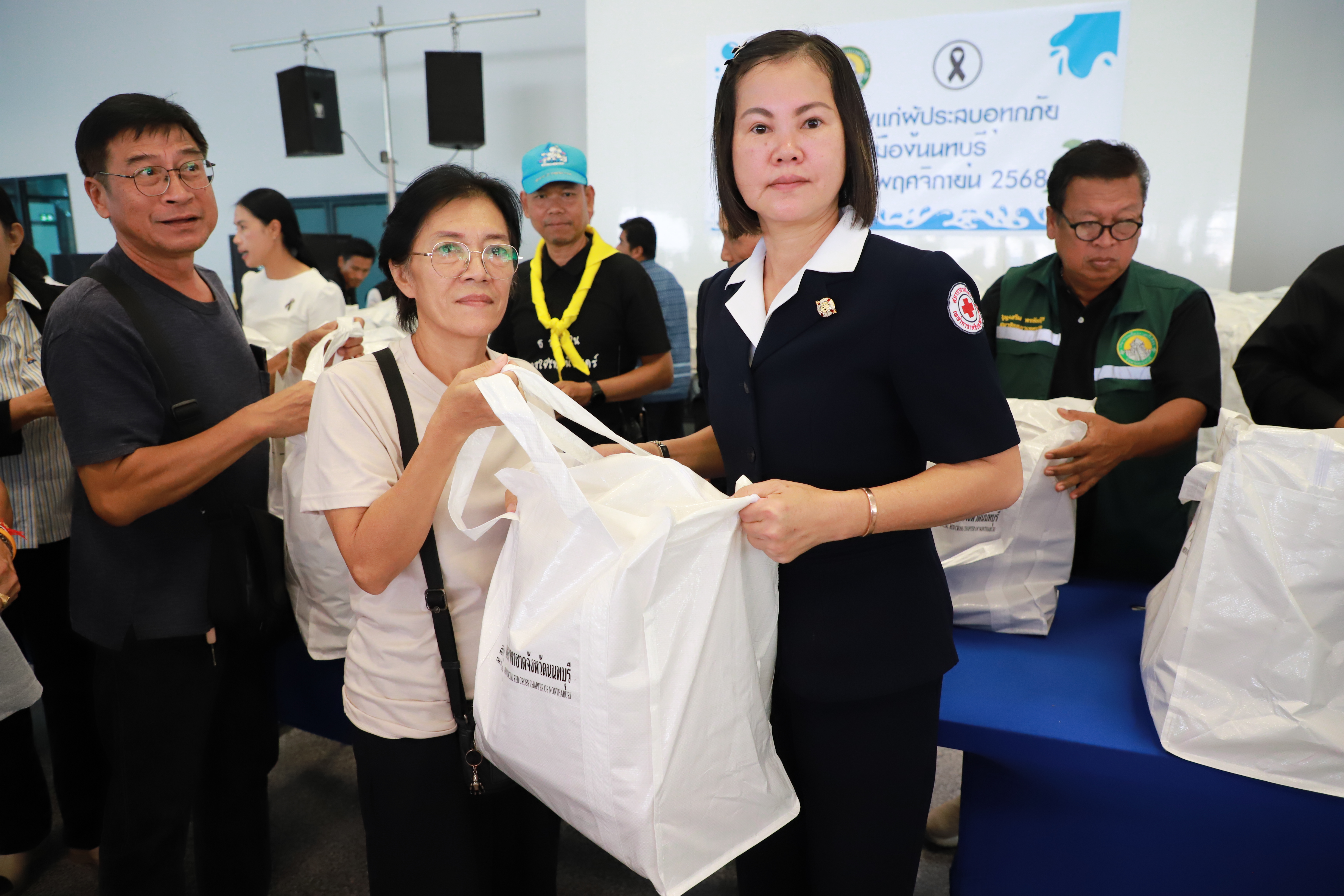 ซึ่งได้ผ่านหลักเกณฑ์จากคณะกรรมการให้ความช่วยเหลือผู้ประสบภัยพิบัติอำเภอเมืองนนทบุรี จำนวน 95 ครัวเรือน ณ อาคารอเนกประสงค์ เทศบาลเมืองบางศรีเมือง