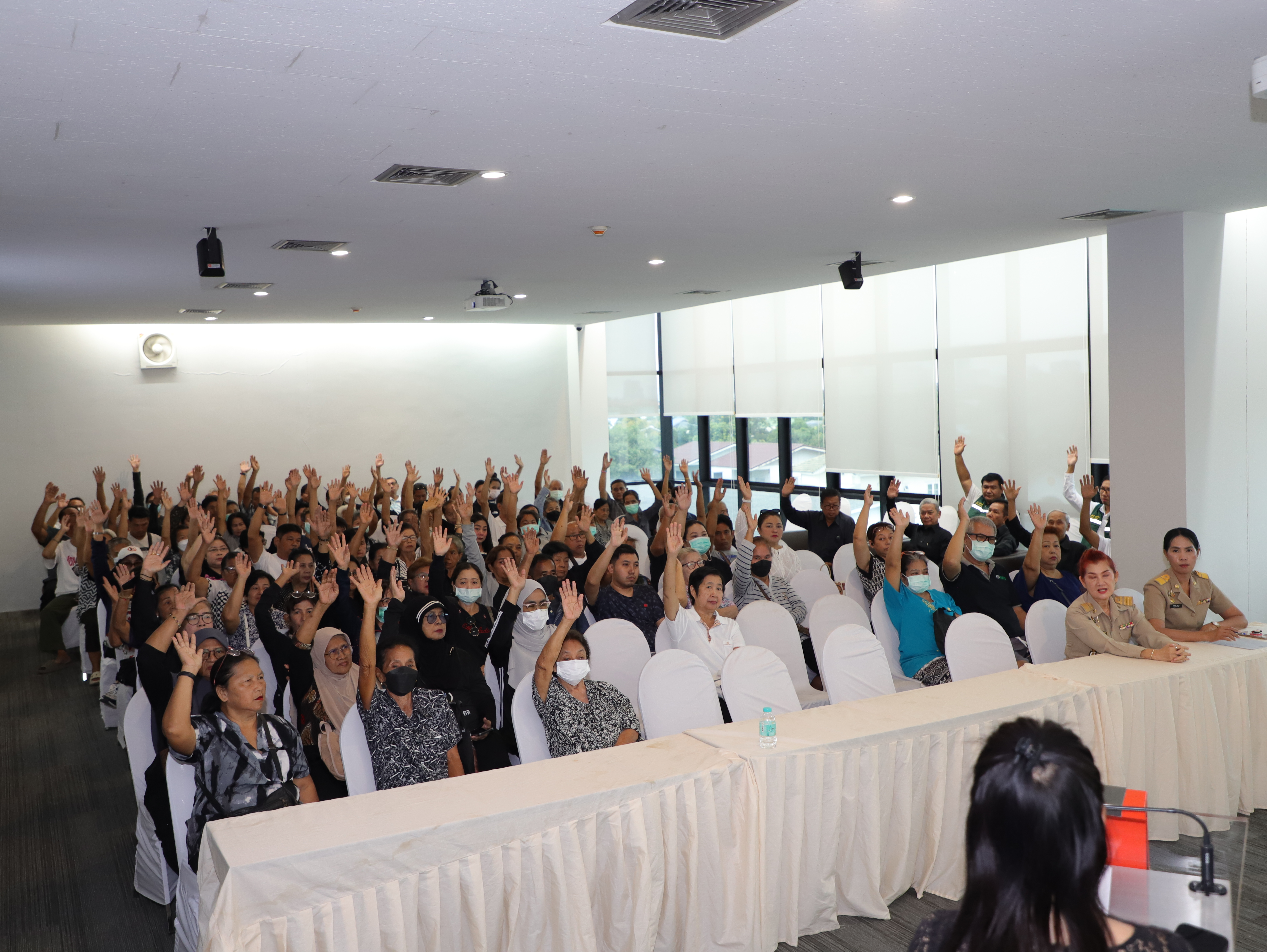 ปริญญา ศักดิ์นาวี นายกเทศมนตรีเมืองบางศรีเมือง พร้อมด้วยคณะ ผู้บริหาร ประธานสภา สมาชิกสภาเทศบาล , รองปลัดเทศบาล , หัวหน้าส่วนราชการ รวมทั้งประชาชนผู้ประสบอุทกภัยในช่วงฤดูฝน จำนวน 96 ครัวเรือน เข้าร่วมประชุมประชาคมดังกล่าว