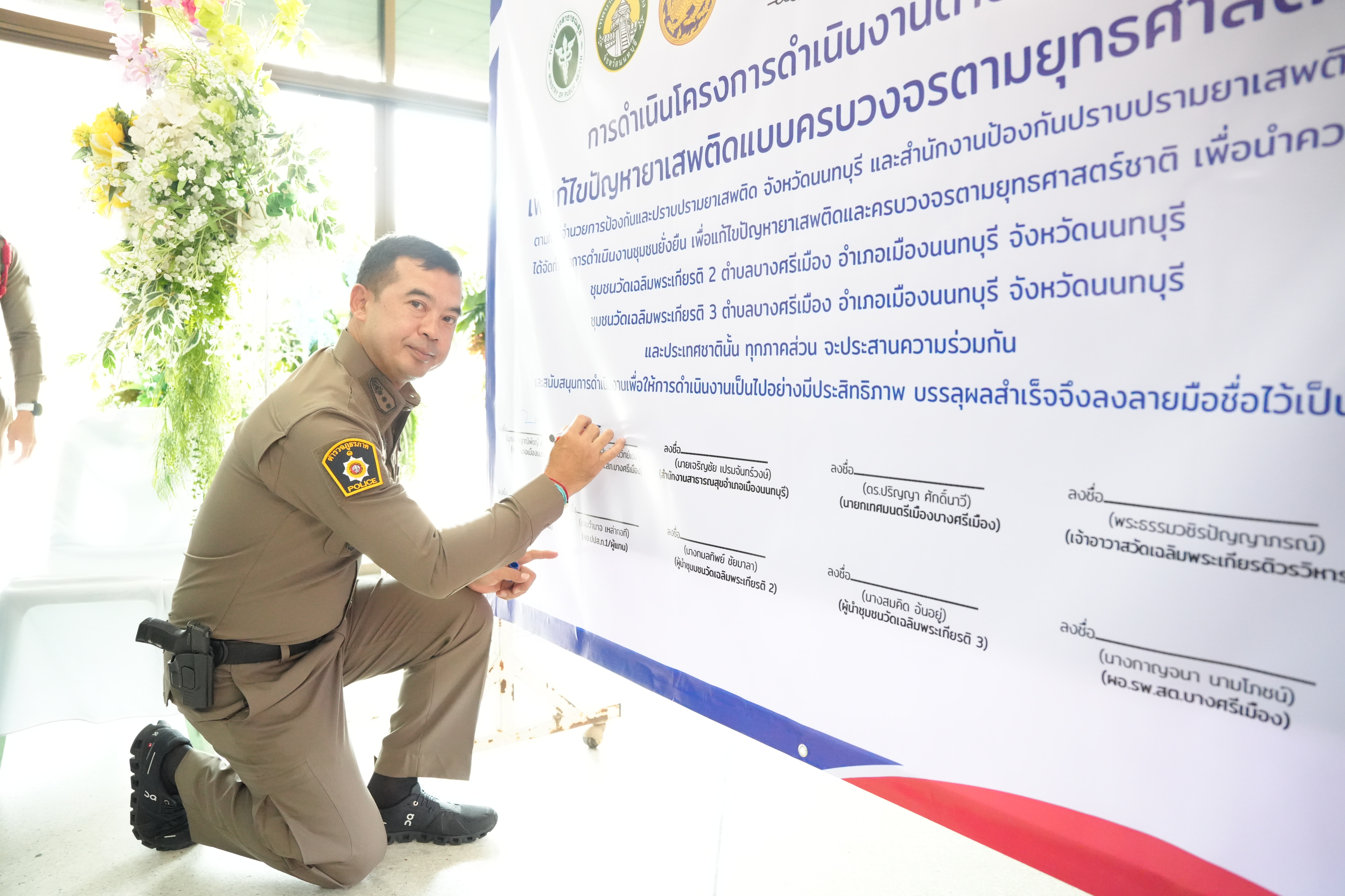 ได้จัดทำโครงการดำเนินงานชุมชนยั่งยืน เพื่อแก้ไขปัญหายาเสพติดและครบวงจรตามยุทรศาสตร์ชาติ เพื่อนำความสุขมาสู่ ณ ชุมชนวัดเฉลิมพระเกียรติ 2,3 ต.บางศรีเมือง อ.นนทบุรี จ.นนทบุรี