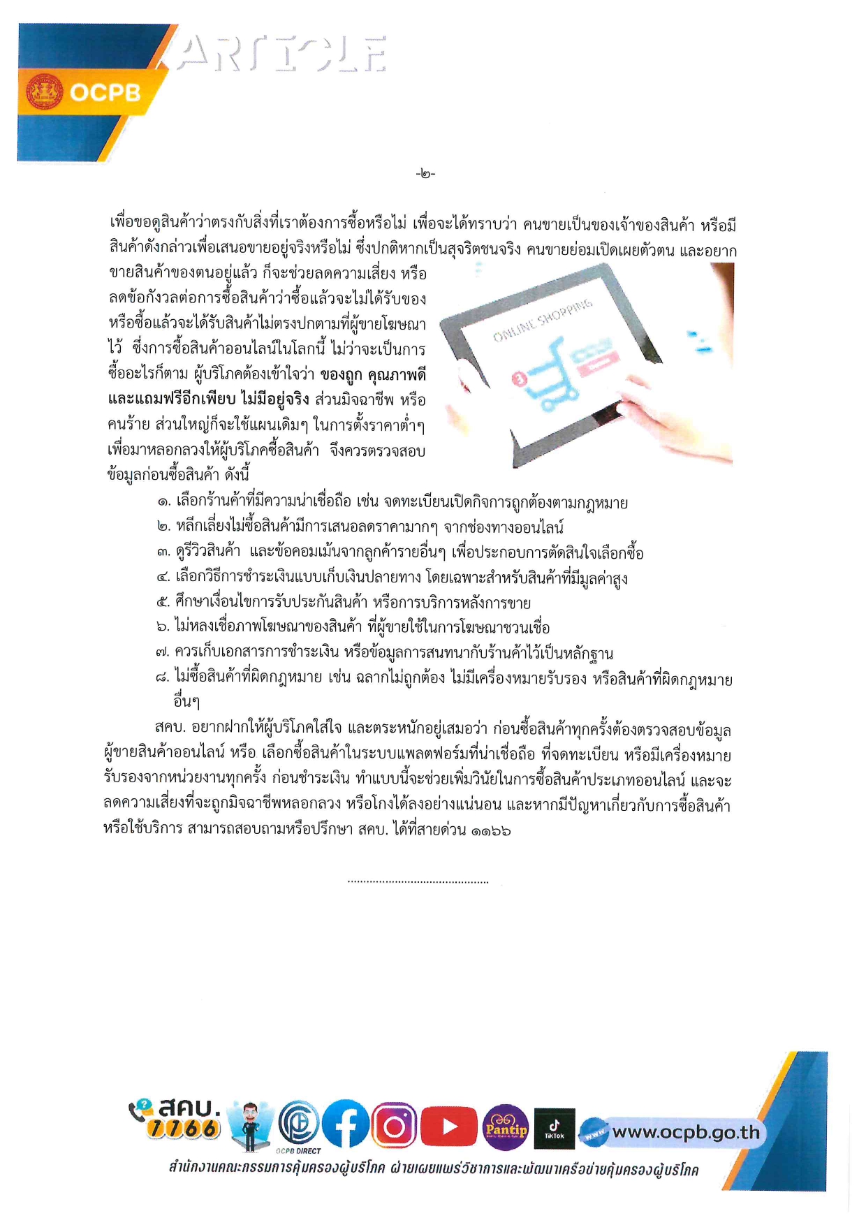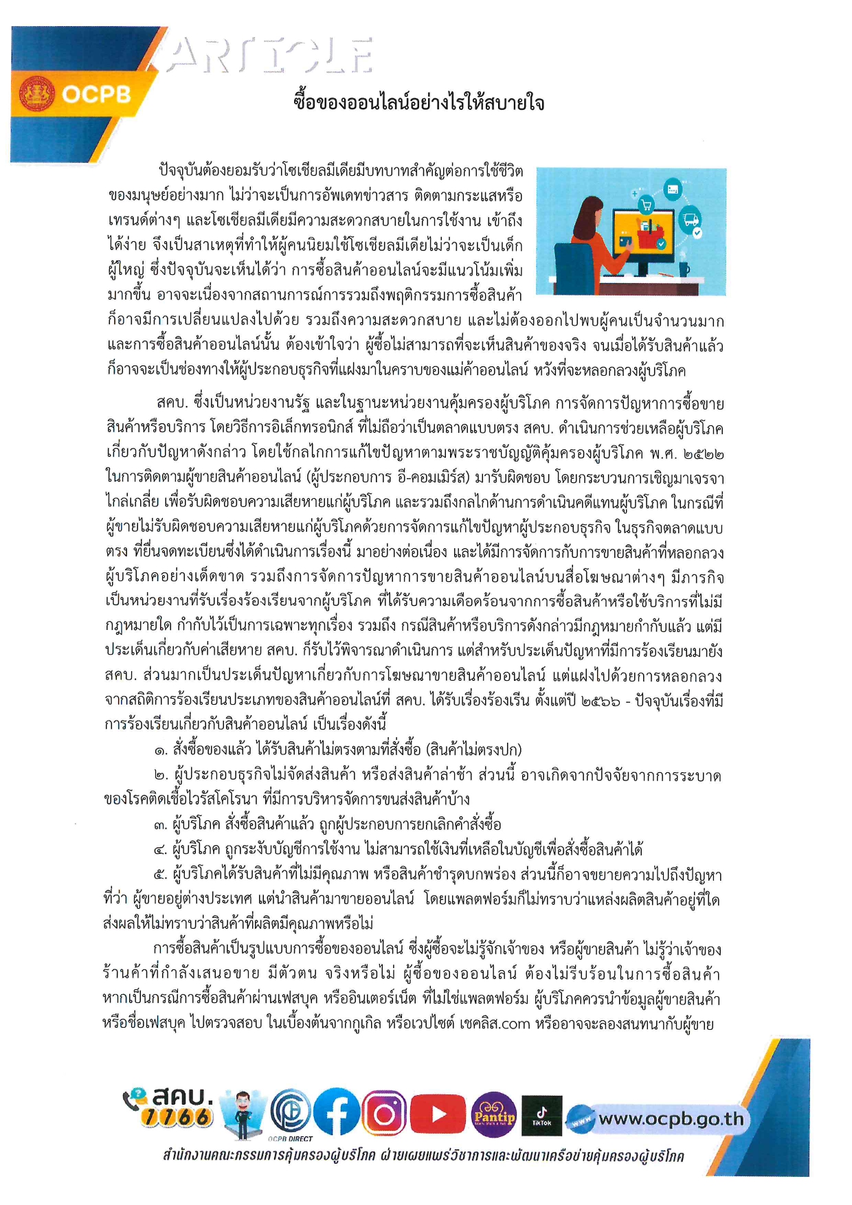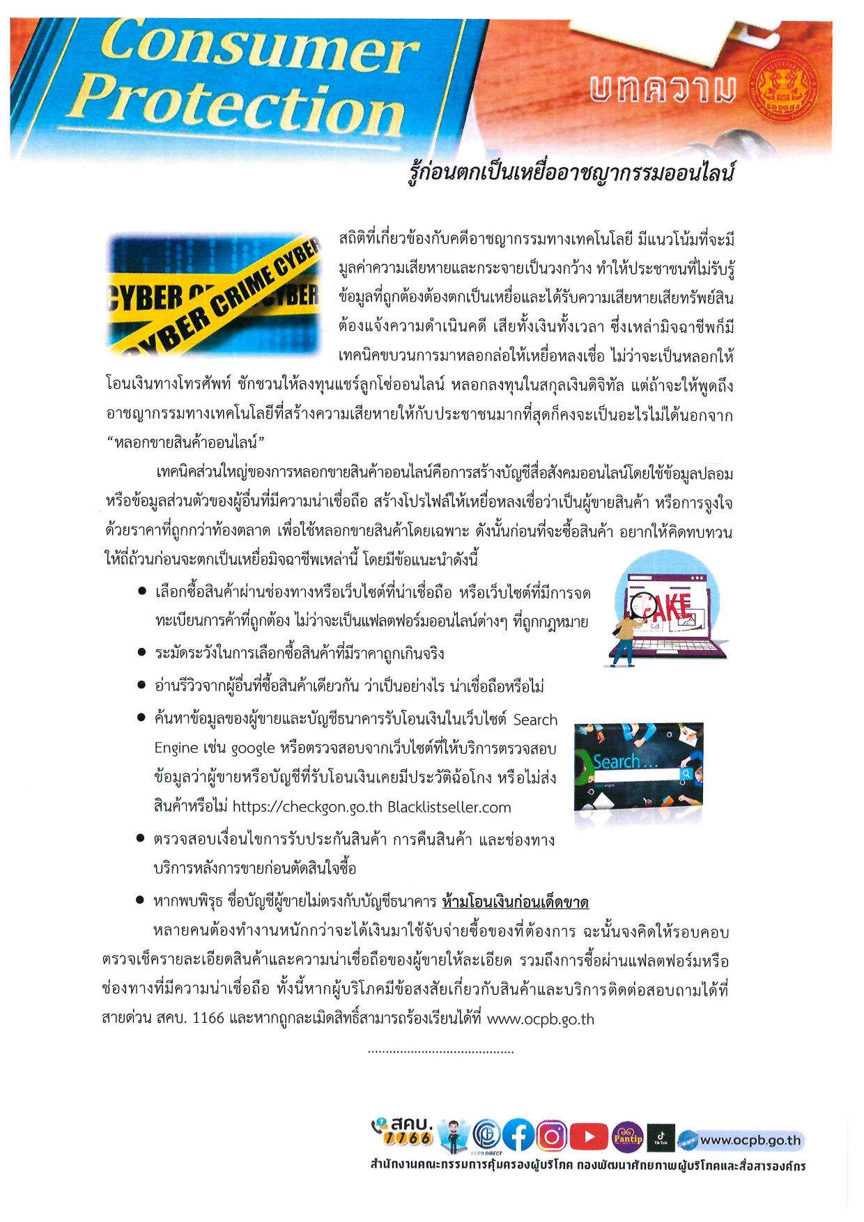 ประชาสัมพันธ์ การคุ้มครองผู้บริโภค สคบ.ด้านการคุ้มครองผู้บริโภค จำนวน 4 เรื่อง 1 บทความ