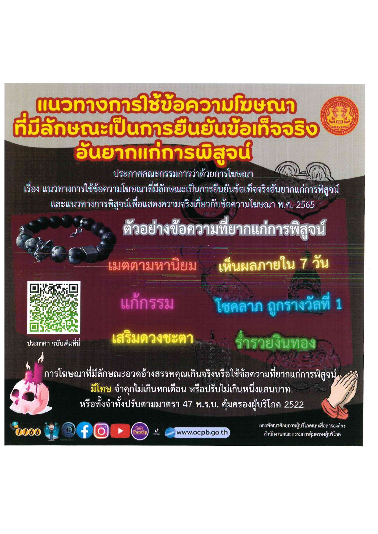 1.แนวทางการใช้ข้อความโฆษณาที่มีลักษณะเป็นการยืนยันข้อเท็จจริงอันยากแก่การพิสูจน์
