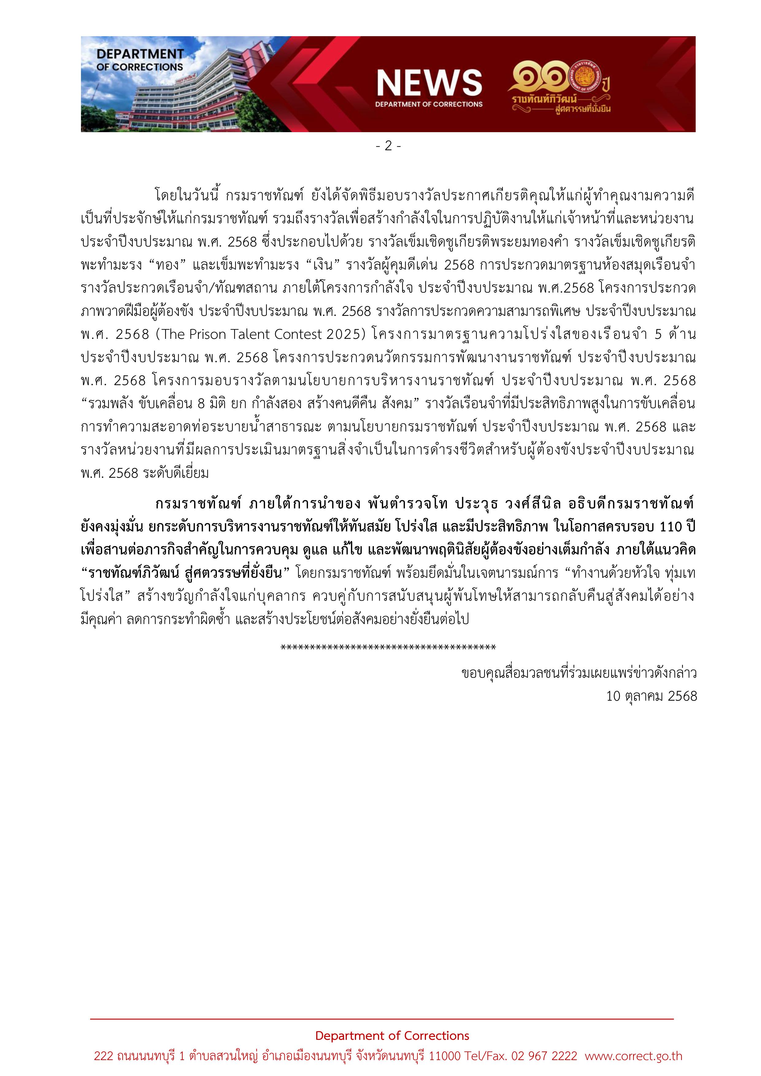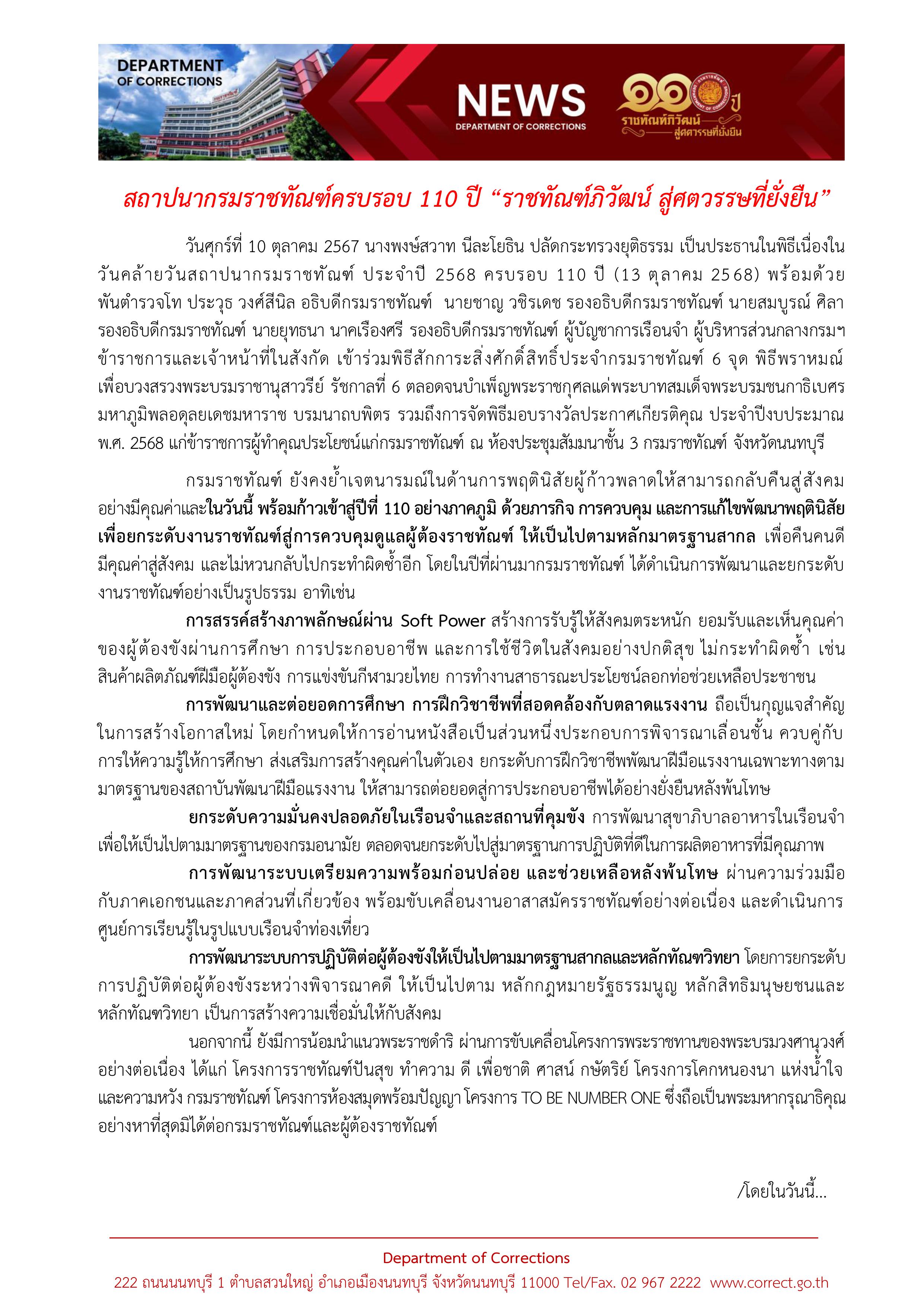 สปอตประชาสัมพันธ์บทบาท ภารกิจ ของกรมราชทัณฑ์ เนื่องในวันคล้ายวันสถาปนากรมราชทัณฑ์ 110 ปี