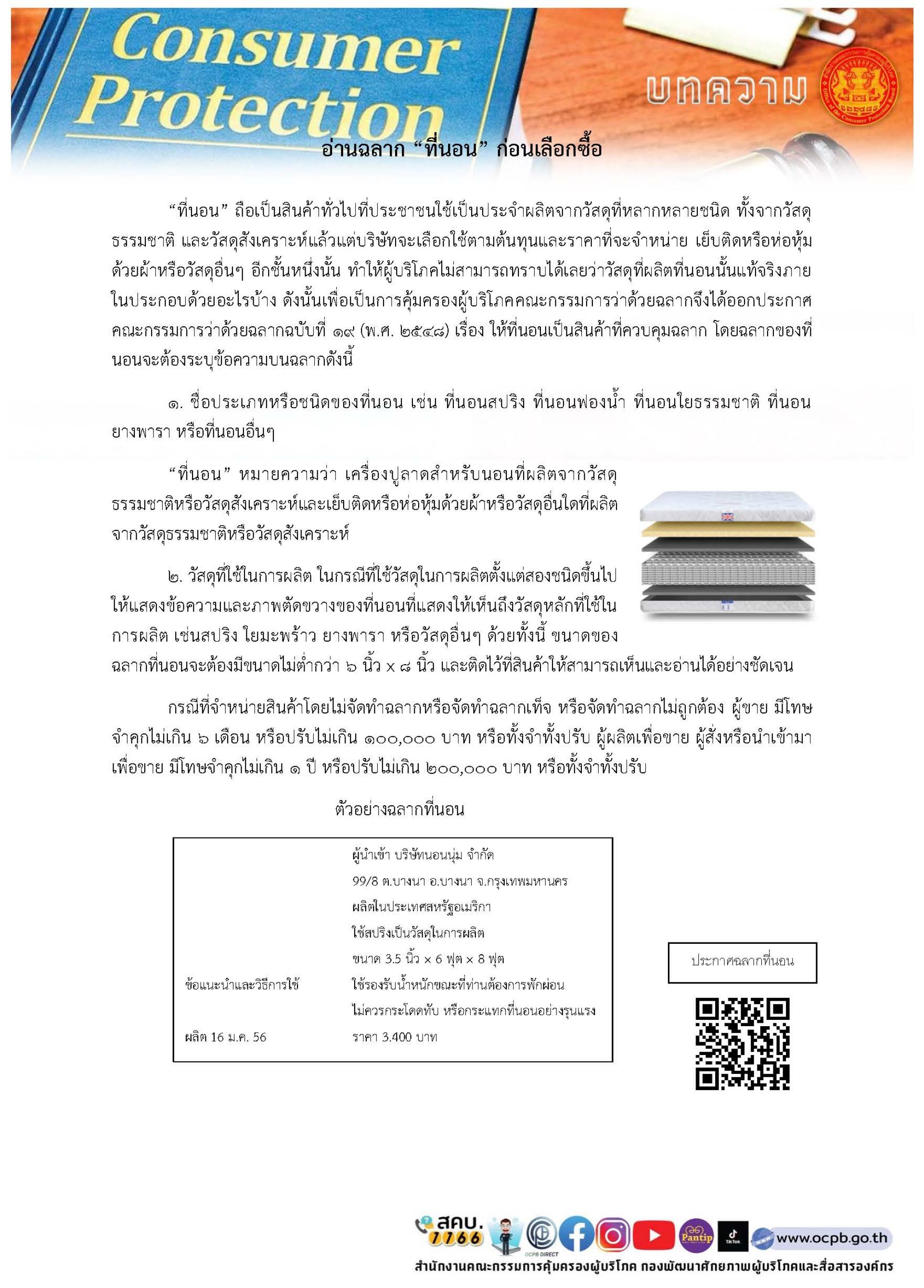 3. การอ่านฉลาก “ที่นอน”