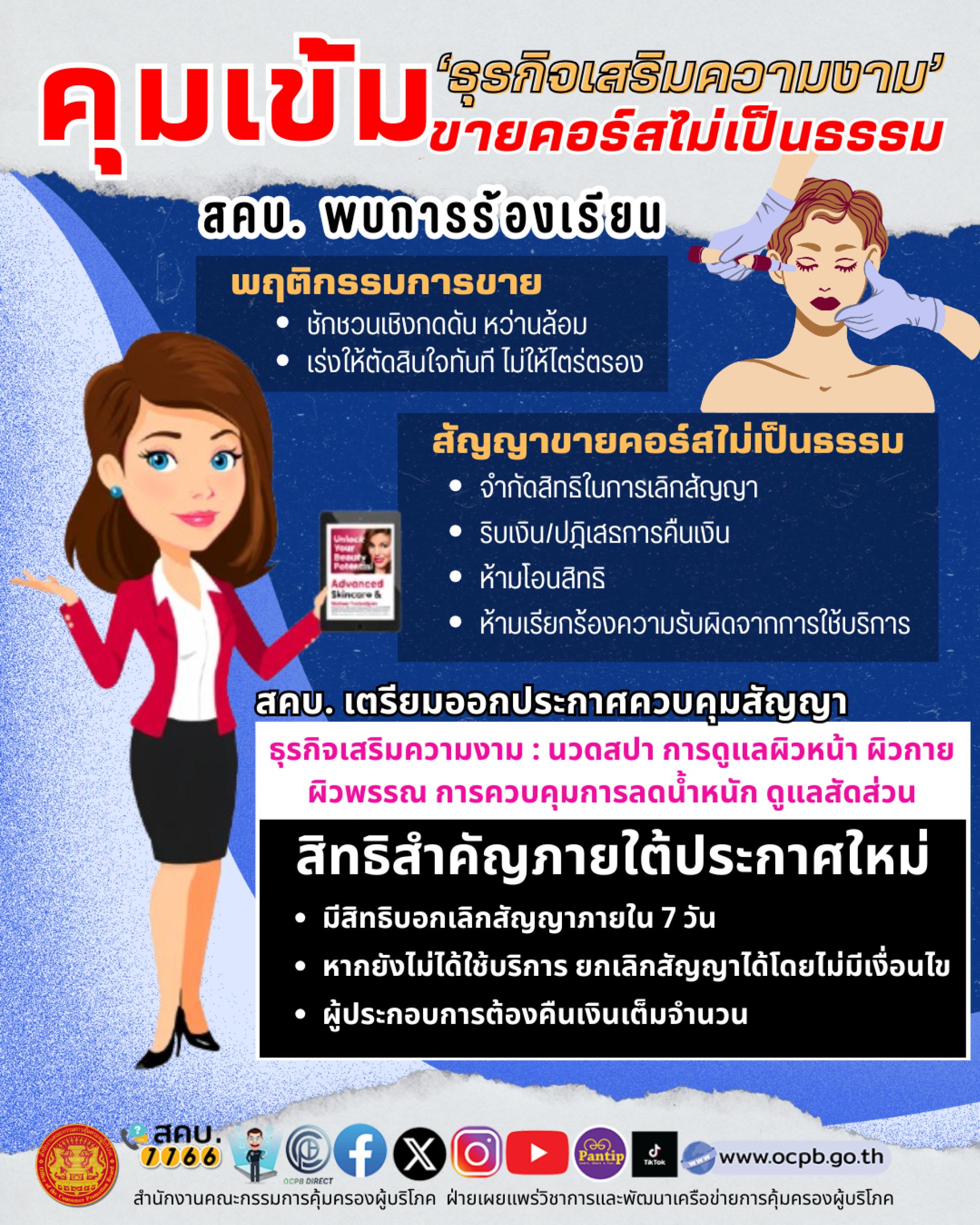 – คุมเข้มธุรกิจเสริมความงาม ป้องกันการเอาเปรียบผู้บริโภค
