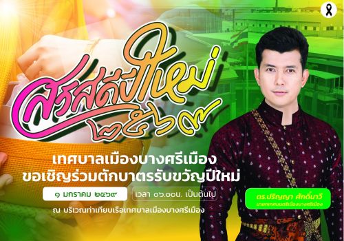 เทศบาลเมืองบางศรีเมือง ขอเชิญพี่น้องชาวบางศรีเมืองและประชาชนพื้นที่ใกล้เคียง ร่วมตักบาตรรับขวัญปีใหม่ปี 2569