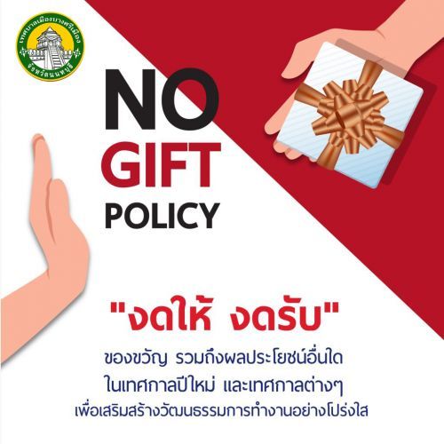 ประกาศนโยบายไม่รับของขวัญหรือของกำนัลจากการปฏิบัติหน้าที่ (No Gift Policy) ของเทศบาลเมืองบางศรีเมือง ประจำปีงบประมาณ พ.ศ.2569