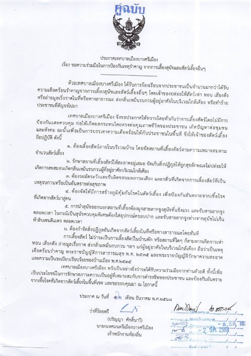เรียนท่านผู้แจ้งตามข้อเท็จจริง ๑. เจ้าหน้าที่ๆ ได้ลงพื้นที่ตรวจสอบบ้านผู้ถูกร้องเรียน พบว่ามีการเลี้ยงสุนัข จำนวน ๑ ตัว จึงได้แจ้งเหตุดังกล่าวๆ ให้เจ้าของสุนัขรับทราบ ได้รับคำชี้แจงว่า ผู้ถูกร้องไม่ได้ปล่อยสุนัขออกมาขับถ่ายบริเวณหน้าบ้านหรือถนนสาธารณะ ในกรณีที่สุนัขจะวิ่งออกมาบริเวณนอกบ้าน คือตอนที่เปิดประตูรั้วนำรถยนต์ถอยเข้า - ออกจากบ้านเพื่อไปทำงาน ๒. ผู้ถูกร้องเรียนได้ชี้แจงเพิ่มเติมว่า ภายในซอย๒ ไม่ได้มีบ้านผู้ถูกร้องหลังเดียวที่เลี้ยงสุนัข แต่ภายในซอยดังกล่าวๆ มีการเลี้ยงสุนัขและแมวเกือบทุกหลังคาเรือน ถ้าเป็นสุนัขของผู้ถูกร้องๆ ยินดีรับผิดชอบและขอภาพถ่าย/วีดีโอ เพื่อเป็นหลักฐานว่าเป็นสุนัขของผู้ถูกร้องจริง ๓. เจ้าหน้าที่ๆ ได้ลงพื้นที่ตรวจสอบข้อเท็จจริง ร่วมกับ ประธานและคณะกรรมการชุมชน อสม. สำรวจบ้านพักอาศัยภายในบริเวณ วัดเฉลิมพระเกียรติ ซอย ๒ จากการสำรวจ พบว่า บ้านพักภายในซอย ดังกล่าวฯ เลี้ยงสุนัข - แมว เกือบทุกหลังคาเรือน ตามที่ผู้ถูกร้องเรียนแจ้งให้ทราบจริง ๔. เทศบาลเมืองบางศรีเมือง ได้ตอบกลับกระทู้เว็บไซต์ข่อภาพถ่ายหรือวีดีโอทุกครั้ง ที่มีการร้องเรียนเกิดขึ้น เพื่อใช้เป็นข้อมูลประกอบการร้องเรียน/ร้องทุกข์ แต่ไม่ได้รับเอกสารหรือข้อมูลตอบกลับแต่อย่างใด 12 ธ.ค. 2568 14:24