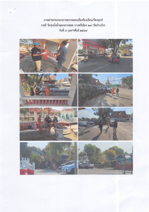 เรียนท่านผู้แจ้ง เจ้าหน้าที่ลงตรวจสอบเหตุร้องเรียนดังกล่าวในช่วงเวลากลางวันไม่พบเหตุตามที่ผู้ร้องแจ้ง จากการสอบถาม พระคุณเจ้าและประชาชนที่อยู่บริเวณนั้น แจ้งว่ากลุ่มวัยรุ่นจะมานั่งในบริเวณดังกล่าวช่วงเย็นเป็นประจำ เคยมีชาวบ้านมาแจ้งทางวัดหลายครั้งแล้ว ทั้งนี้เห็นควรทำหนังสือแจ้งประธานชุมชนวัดป่าเรไร ให้ช่วยกำกับดูแลแก้ไขเหตุดังกล่าว จึงเรียนมาเพื่อทราบ